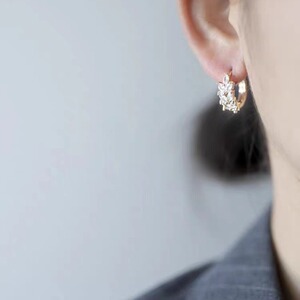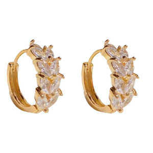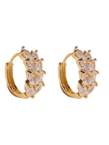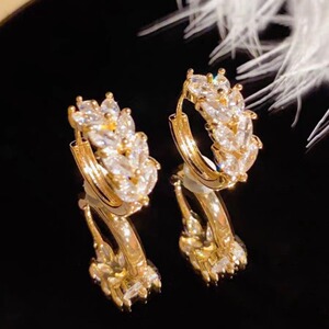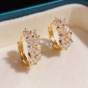 爆款超闪精致小巧麦穗圈圈铜耳扣女设计感日常百搭锆石树叶耳环
