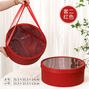 源头厂家直销高档手提圆形水果鲜花包装盒开窗花盒礼盒防水