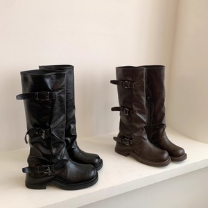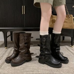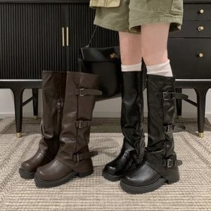 厚底粗跟褶皱长筒靴女2025新款秋冬季女靴辣妹堆堆裤管靴骑士靴子