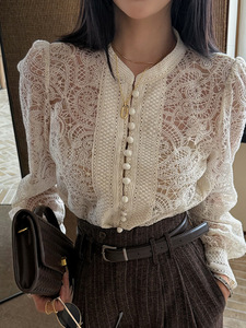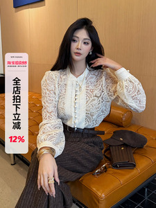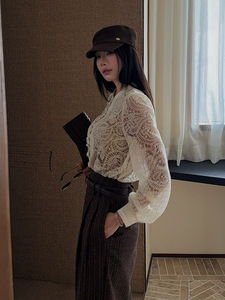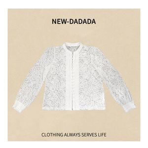 利达 NEW DADADA【清韵浮白】白色镂空长袖开衫修身气质雪纺衫女