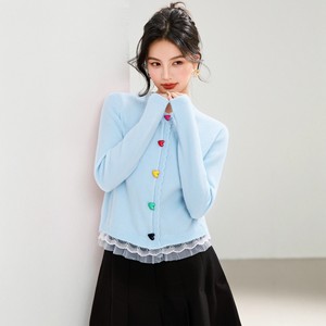 G6778彩色爱心纽扣浅蓝色显白日常通勤针织开衫少女秋冬新款优雅