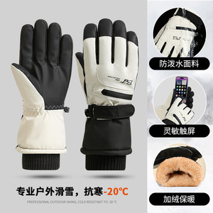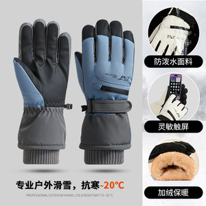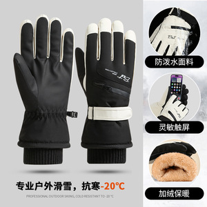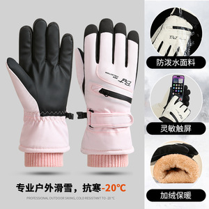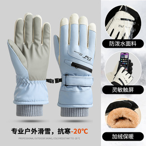 滑雪手套女冬季可触屏防寒玩雪防泼水加绒加厚骑行电动车保暖手套