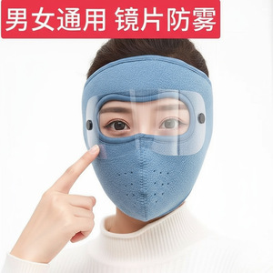 保暖面罩加厚户外骑行防风防尘护目镜耳罩摇粒绒透气防寒护脸口罩