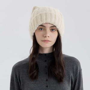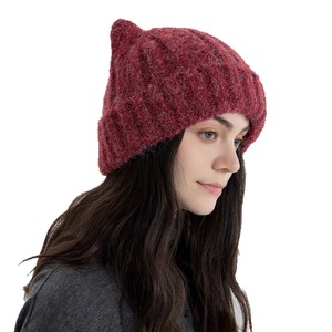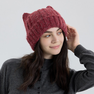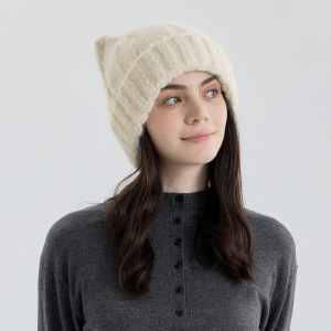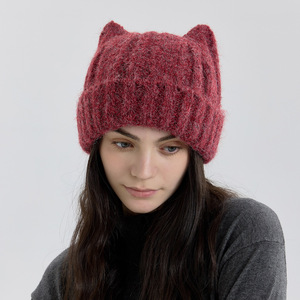 个性猫耳朵可爱毛线帽针织纯色大头围护耳套头保暖女秋冬潮流搭配