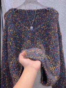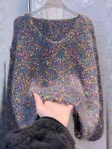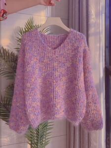 慵懒风高级感彩色点点毛衣女2025春秋V领套头宽松加厚上衣针织衫