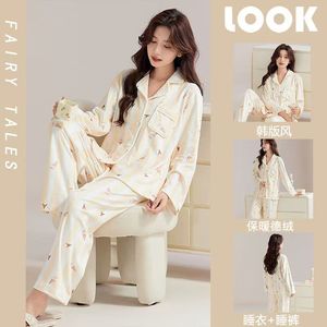 卡通Kitty猫睡衣女冬季德绒保暖长袖长裤套装美少女学生ins家居服