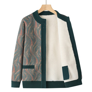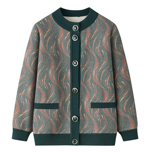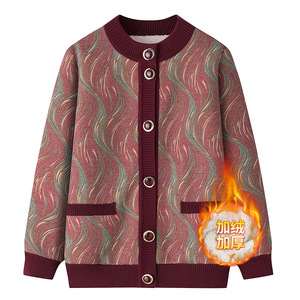 中老年女秋冬款妈妈加绒加厚针织衫毛衣保暖上衣奶奶装羊羔绒外套