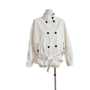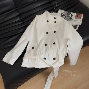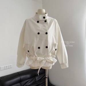 2025新款秋季气质设计感短款立领双排扣风衣外套长袖纯色系带