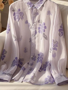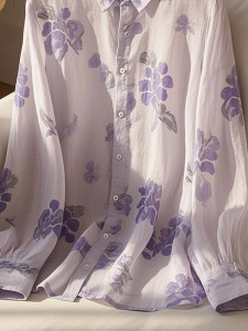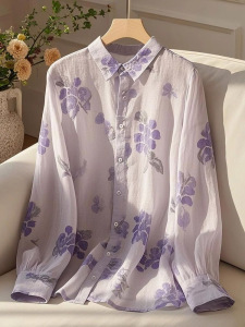 重工高端别致超好看独特漂亮法式上衣紫色印花衬衫女2025秋款百搭