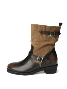 2025年秋冬新款复古皮带西部靴女骑士靴小众粗跟百搭舒适厚底女靴