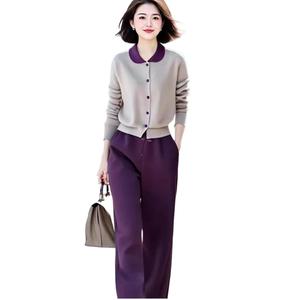 2025秋季新款设计感女装撞色翻领卫衣套装气质裤子两件套其他