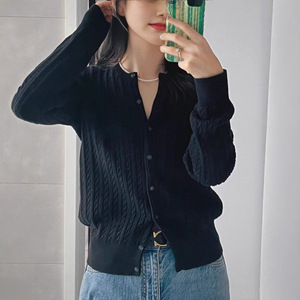 bh6241秋季女士经典款简约百搭小马儿刺绣显瘦亲肤麻花针织开衫