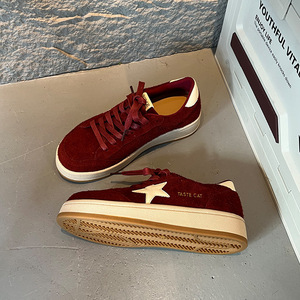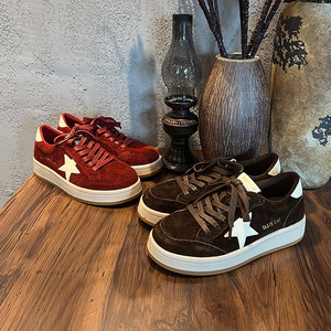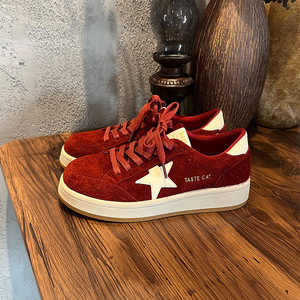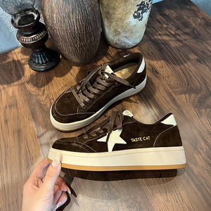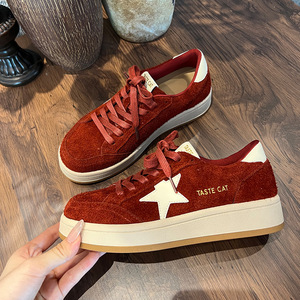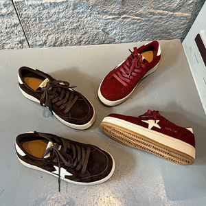 真皮星星德训鞋女秋冬新款复古厚底小白鞋休闲百搭软底运动鞋板鞋