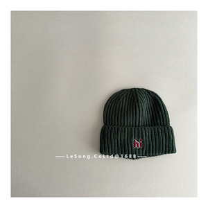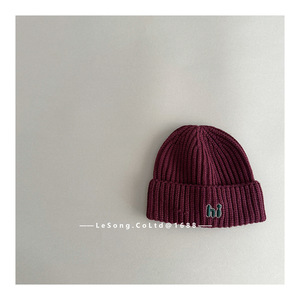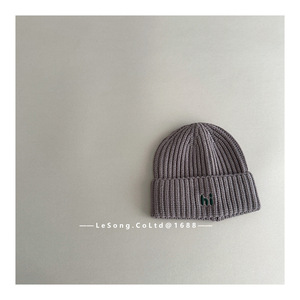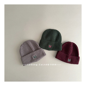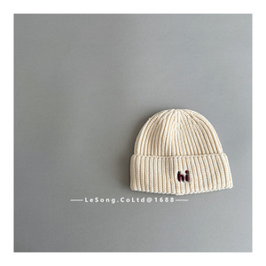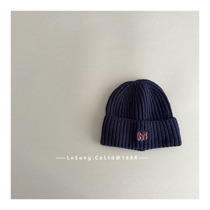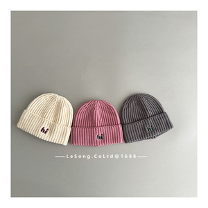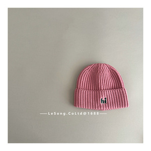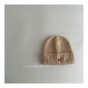 日常韩系ins儿童针织帽秋冬季保暖刺绣hi字母男童女童套头帽子