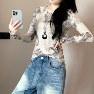 法式复古印花针织罩衫女春夏薄款洋气减龄松弛感宽松显瘦t恤上衣