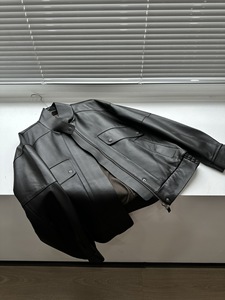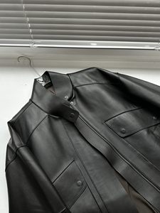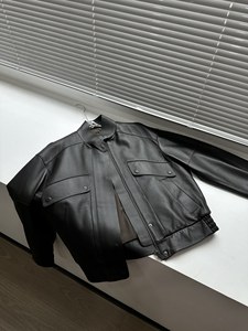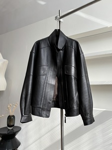绵羊皮立领夹克外套女式黑色机车真皮皮衣长袖拉链短外套