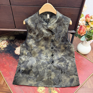 2025秋季新款新中式国风提花晕染马甲立领高级设计感坎肩轻奢马夹