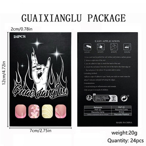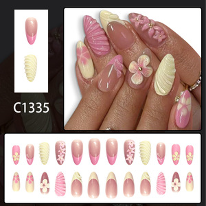 中款亮面水滴甲欧美跨境粉红法式尖甜美花朵3D立体滴胶穿戴甲24片