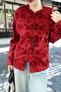 2025新款新中式篙品质人丝提花章绒气质名媛外套时尚减龄开衫上衣