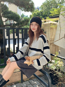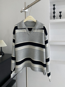 GAGD 翻领复古条纹毛衣女2025秋季新款时尚百搭高级感针织上衣