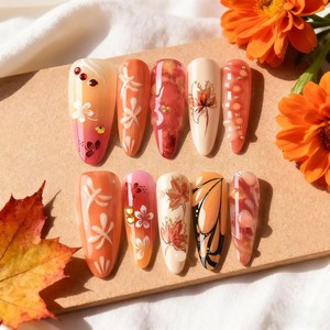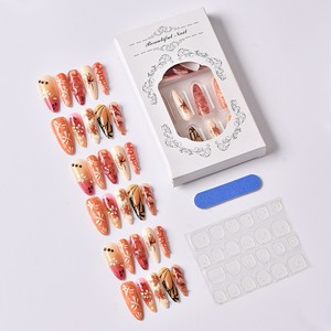 30片3D立体花朵枫叶碎钻穿戴甲欧美热销成品假指甲跨境穿戴甲批发