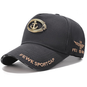四季新款棒球帽高顶宽檐硬顶遮阳帽金属船锚重工刺绣鸭舌帽跨境
