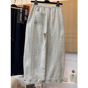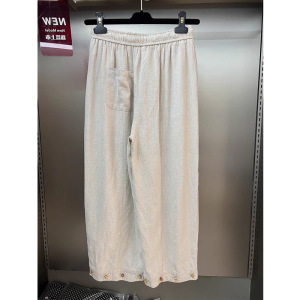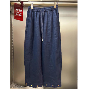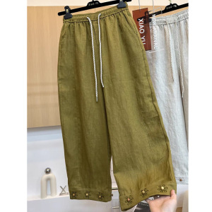 2025秋季新款宽松显瘦松紧腰裤口刺绣休闲阔腿裤女高腰百搭直筒裤