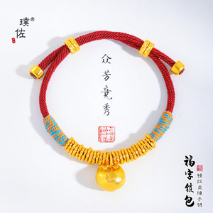 璞佐强保色沙金麦穗小胖福金坨坨盘缠手绳新中式小众设计编织手绳