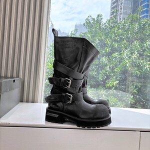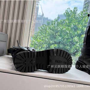 牛皮做旧新款巴黎毒液靴女世家厚底骑士靴真皮马丁靴皮带扣长靴
