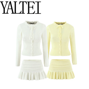 YALTEI跨境速卖通ins欧美外贸 女装 针织开衫毛衣低腰百褶包臀针