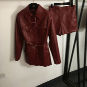 2025秋冬南油高端外贸新款套装老花字母压花 长袖PU皮衣外套+短裤