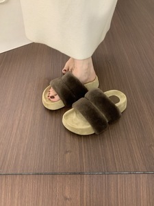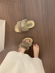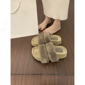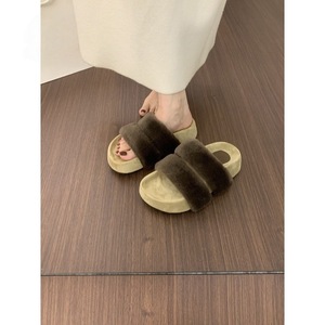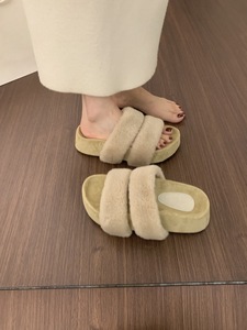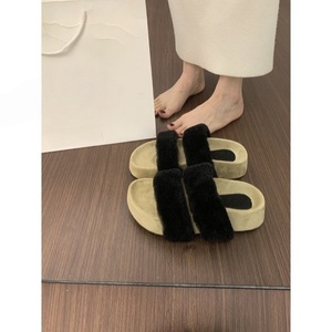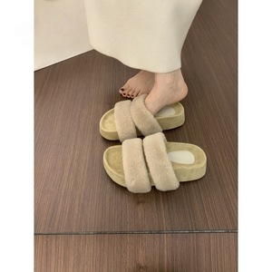网红爆款一字带厚底毛毛拖鞋女外穿秋冬2025新款仙女棉拖鞋