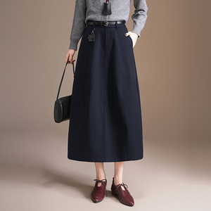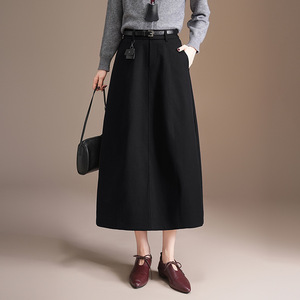 秋冬半裙子2025年新款高腰显瘦黑色垂感中长款a字裙女气质半身裙