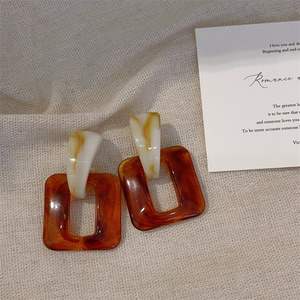 复古港风美拉德色方形大耳环简约耳扣高级感茶色秋冬天时尚耳饰品