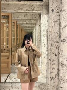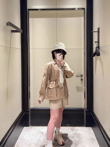经典卡其色户外机能科技面料休闲夹克上衣收腰百搭低调舒适外套女