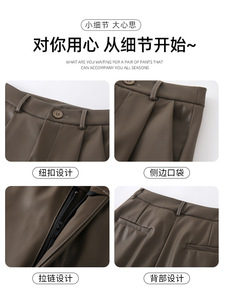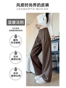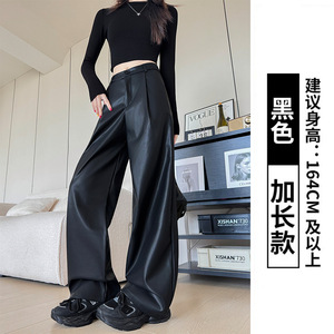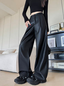 黑色PU皮裤女秋冬新款高腰显瘦直筒裤休闲高级感西装裤时尚阔腿裤