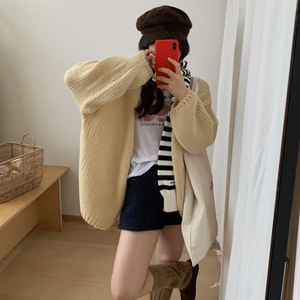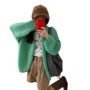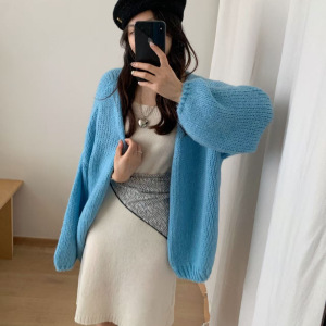 韩系马海毛针织开衫女士秋季新款时尚休闲休闲粗线简约风毛衣外套