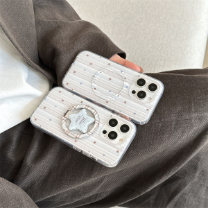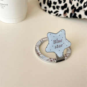 磁吸-白底蓝棕星星拼接 壳+星星波点英文360旋转支架