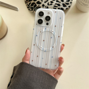 韩风蓝棕星星拼接磁吸适用iPhone17苹果16ProMax/15/14手机壳新款