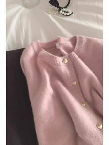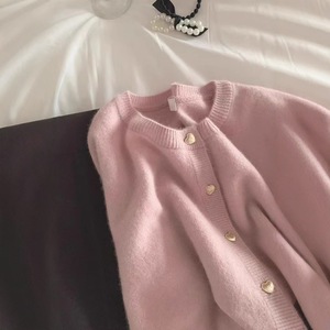 新款纯色圆领针织开衫女毛衣2025早秋韩版软糯小众外套长袖上衣潮