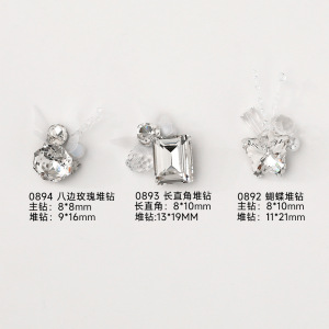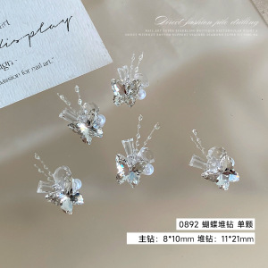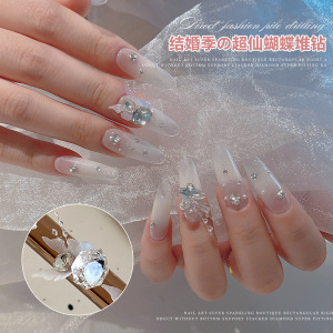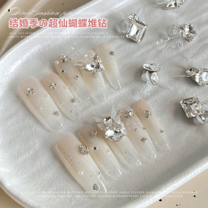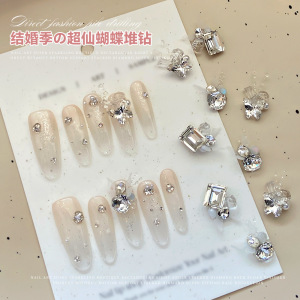美甲饰品K9蝴蝶堆钻长直角高级感超仙婚纱手工堆钻球成品指甲大钻