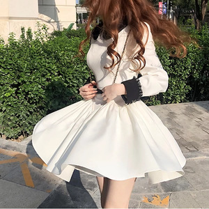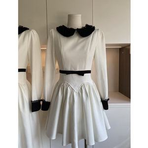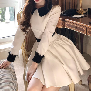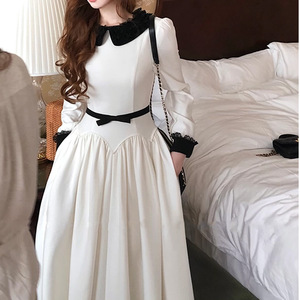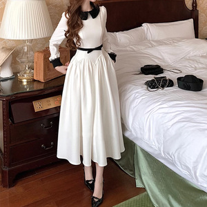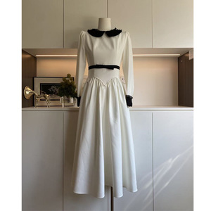 ZHOYUE奥黛丽 经典分割线赫本连衣裙拼色娃娃领蝴蝶结显瘦a字长裙