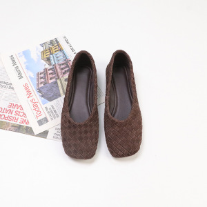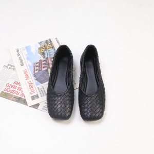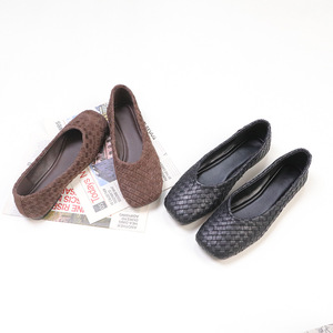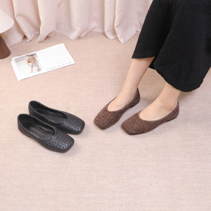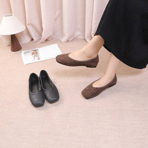 羊皮版2025新款复古编织单鞋时尚通勤舒适浅口软底圆头菱格单鞋