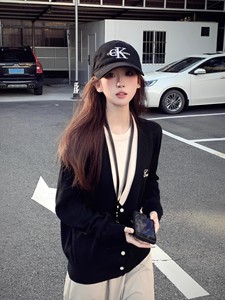 韩系假两件针织开衫女早秋季穿搭撞色长袖毛衣宽松慵懒风轻奢上衣