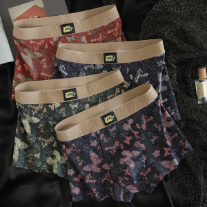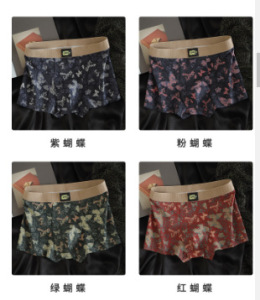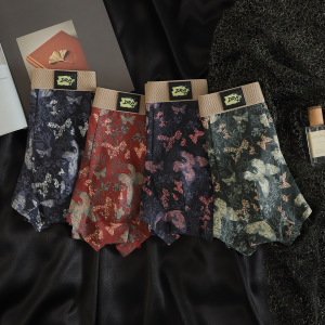 爆款蝴蝶花男士内裤纯棉短裤头复古国风平角裤透气四角裤