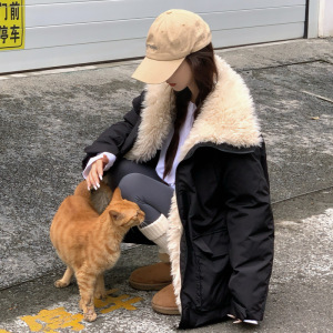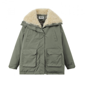 明星同款军绿色羊羔毛冲锋衣外套女时尚中长款派克服羊羔绒棉服女