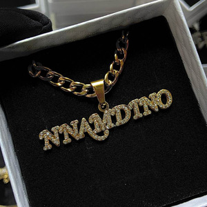 亚马逊热销不锈钢18k金diy名字项链个性嘻哈可拆卸英文字母吊坠
