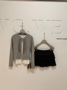 WGWE秋季法式小香风高级感波点轻薄修身显瘦短款针织开衫女W7354