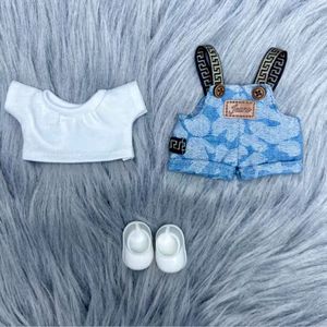 潮玩幸运花纹labubu衣服套装迷彩背带裤17cm拉布布通用娃衣派对