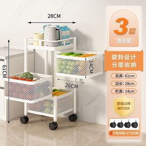 可旋转多层落地卧室小推车厨房置物架多功能收纳家用零食架床头架